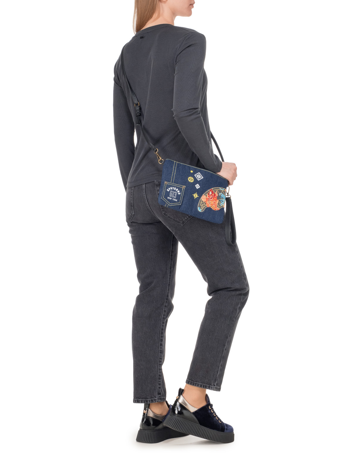 Карманы: Внешние - 1, Внутренние - 1; Застежка: Молния; Ремешок: Плечевой, Для ношения в руке, Регулируемый; Декор: Вышивка