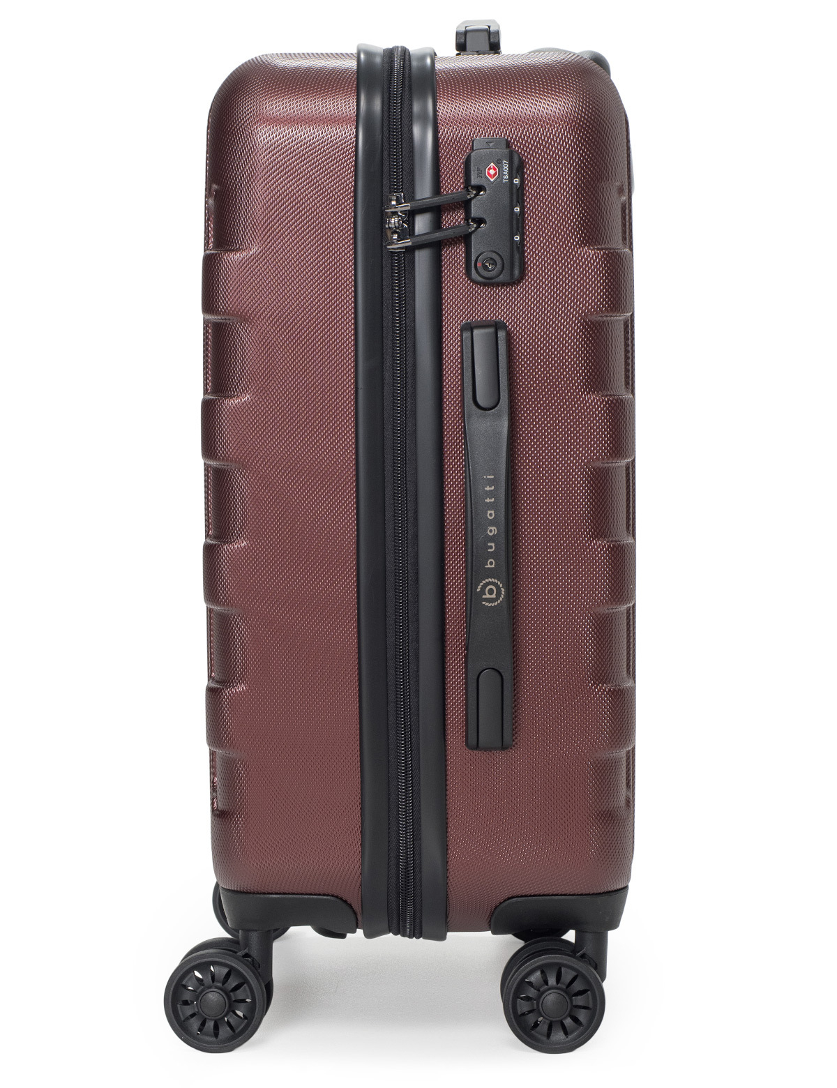 Galatea - наша неповторимая серия чемоданов с рельефно нанесённым на корпус большим логотипом Bugatti. Вся товарная линейка представлена в классическом черном и бордовом цветах. Благодаря корпусу, сделанному из смеси АБС-пластика и поликарбоната, каждая модель отличается лёгким весом и повышенной прочностью. Четыре резиновых колеса с бесшумным ходом и возможностью поворота на 360° обеспечивают ровное движение. Лёгкая телескопическая ручка эргономичной формы фиксируется в нескольких положениях для удобства пользователей с разным ростом. Замок TSA с трехзначным кодом идеально подходит для защиты содержимого багажа от несанкционированного вскрытия. Дополнительная ручка на дне корпуса облегчает загрузку и выгрузку чемодана. Сетчатые разделительные стенки на молнии растягиваются для удобства упаковки, а фиксирующие ремни охватывают большую поверхность и обеспечивают сохранность сложенных вещей.