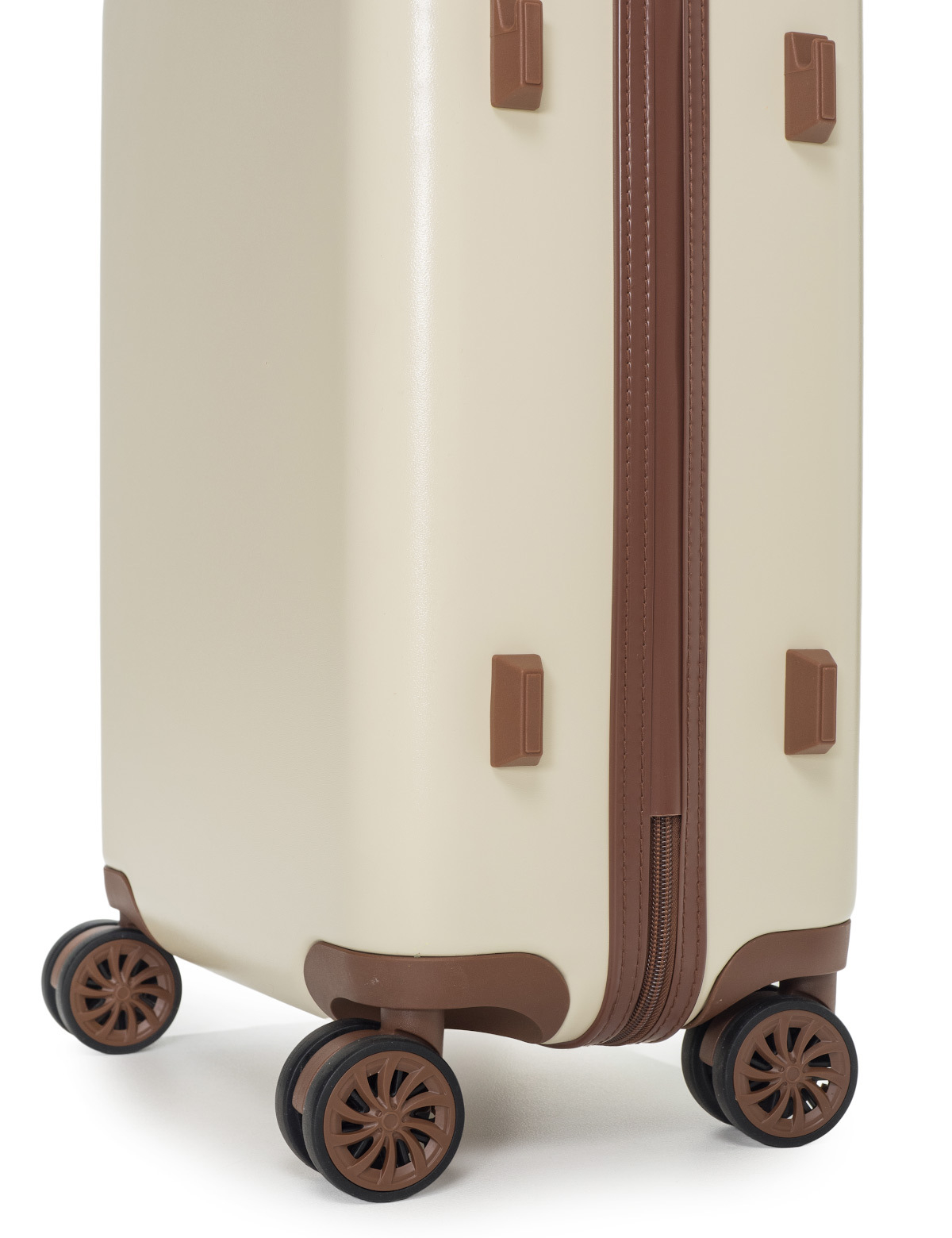 AMELIA воплощает собой неповторимый образ, сочетающий эстетику ретро с современной функциональностью. Вся товарная линейка представлена в великолепных темно-изумрудном и кремовом оттенках. Контрастные детали насыщенного коричневого цвета, бронзовые ручки и фурнитура идеально дополняют дизайн, подчеркивают индивидуальность и выразительность каждой модели. Изготовленные из высококачественного АБС-пластика и поликарбоната, чемоданы AMELIA обладают удивительной прочностью и легкостью. Четыре резиновых колеса с бесшумным ходом и возможностью поворота на 360° обеспечивают плавное передвижение по любой поверхности, сохраняя при этом полную маневренность. Интегрированный замок TSA с трехзначным кодом гарантирует защиту вашего багажа от несанкционированного доступа. Продуманная концепция больших отделений с перегородкой на молнии и дополнительными карманами максимально оптимизирует использование внутреннего пространства. Легкая телескопическая ручка с несколькими положениями фиксации обеспечивает комфорт в использовании для людей разного роста. Удобные ручки сбоку и на дне корпуса облегчают загрузку и выгрузку чемодана. Боковые держатели позволяют разместить дополнительные дорожные аксессуары.