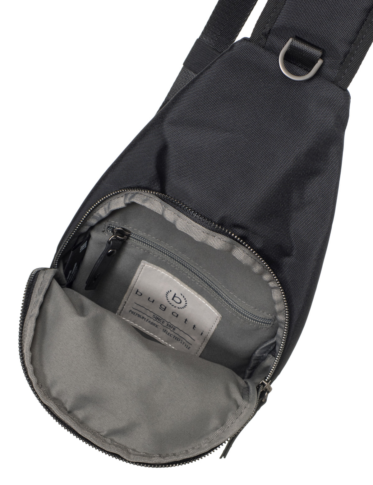 Внешняя организация: передний карман на молнии, кольцо для ключей, съёмный регулируемый плечевой ремень (до 140 см)