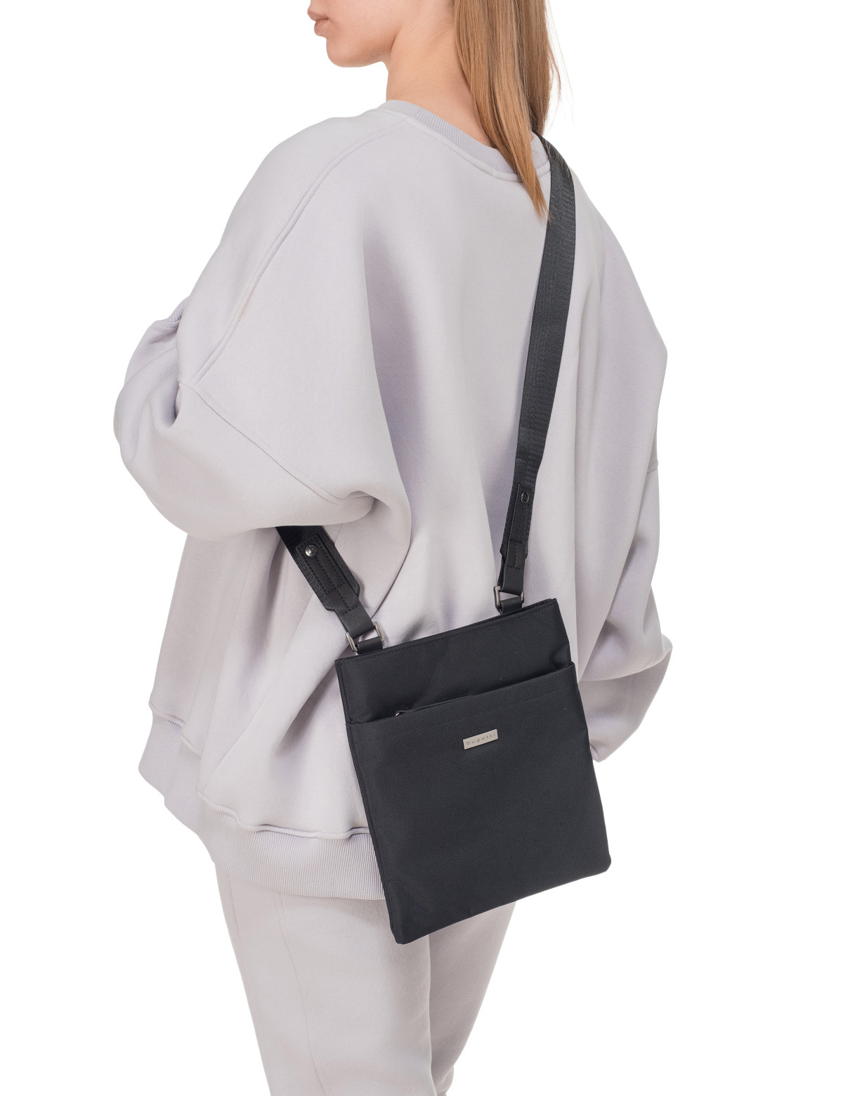 Внешняя организация: передний карман на молнии, задний карман на молнии, регулируемый плечевой ремень (до 150 см)