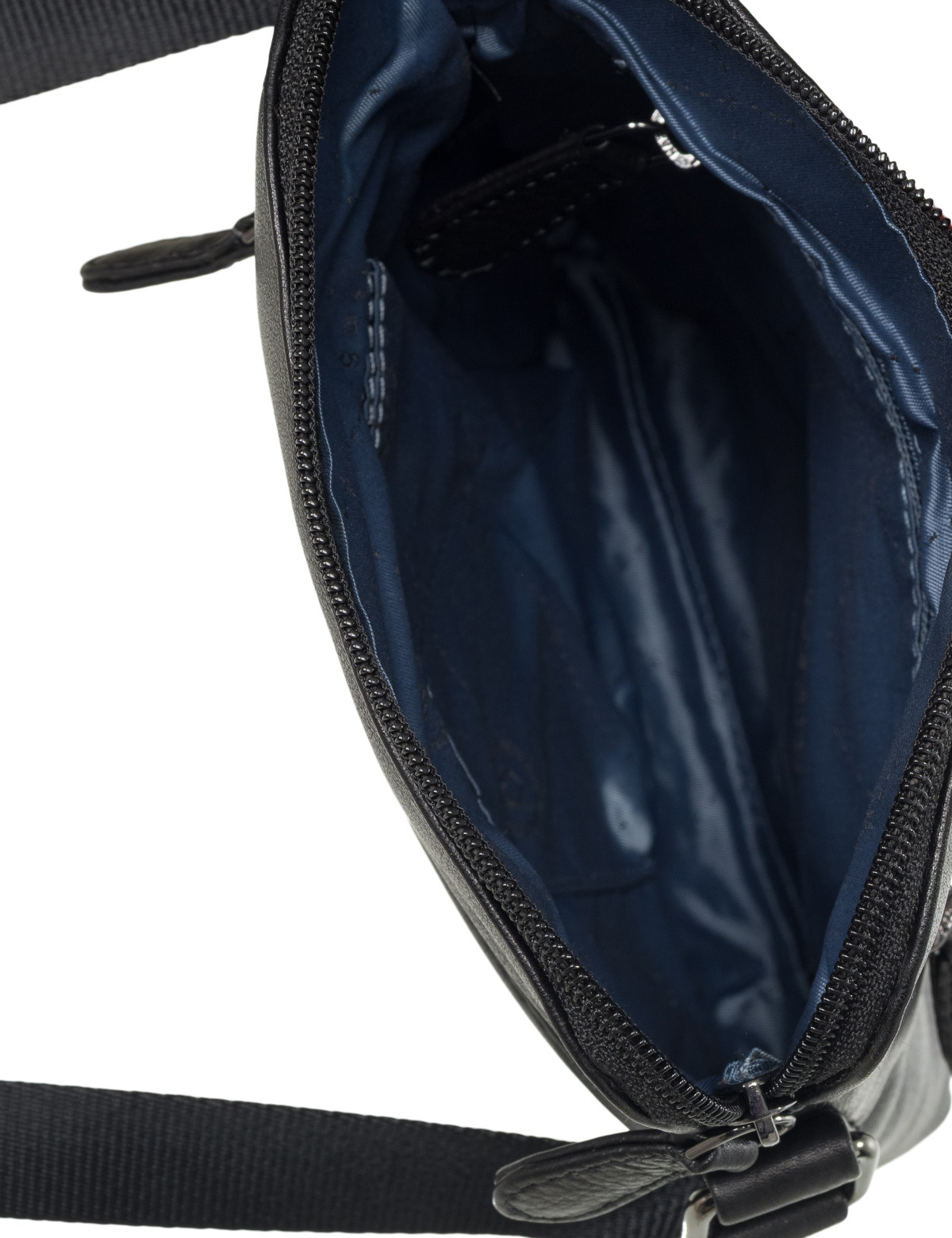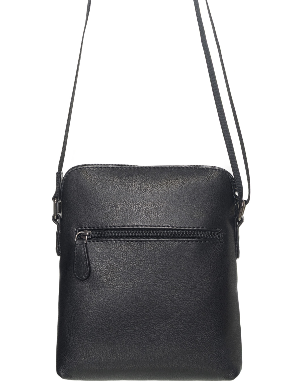 Функциональная организация: основное отделение на молнии с открытым карманом и внутренним отделением на молнии, передний карман на молнии, задний карман на молнии, регулируемый плечевой ремень.