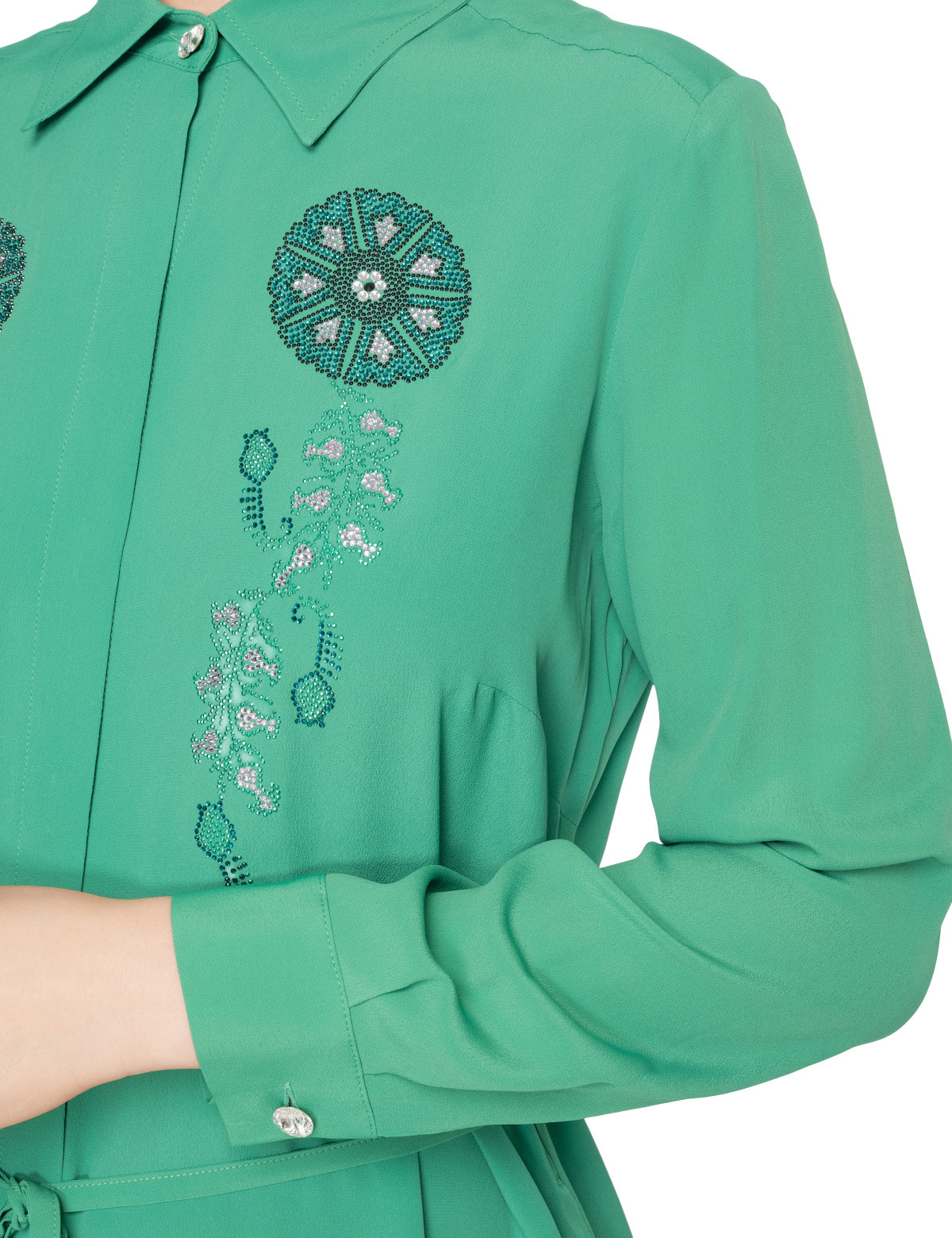 Карманы: Внешние - 2; Застежка: Пуговицы; Особенности: Пояс; Декор: Стразы