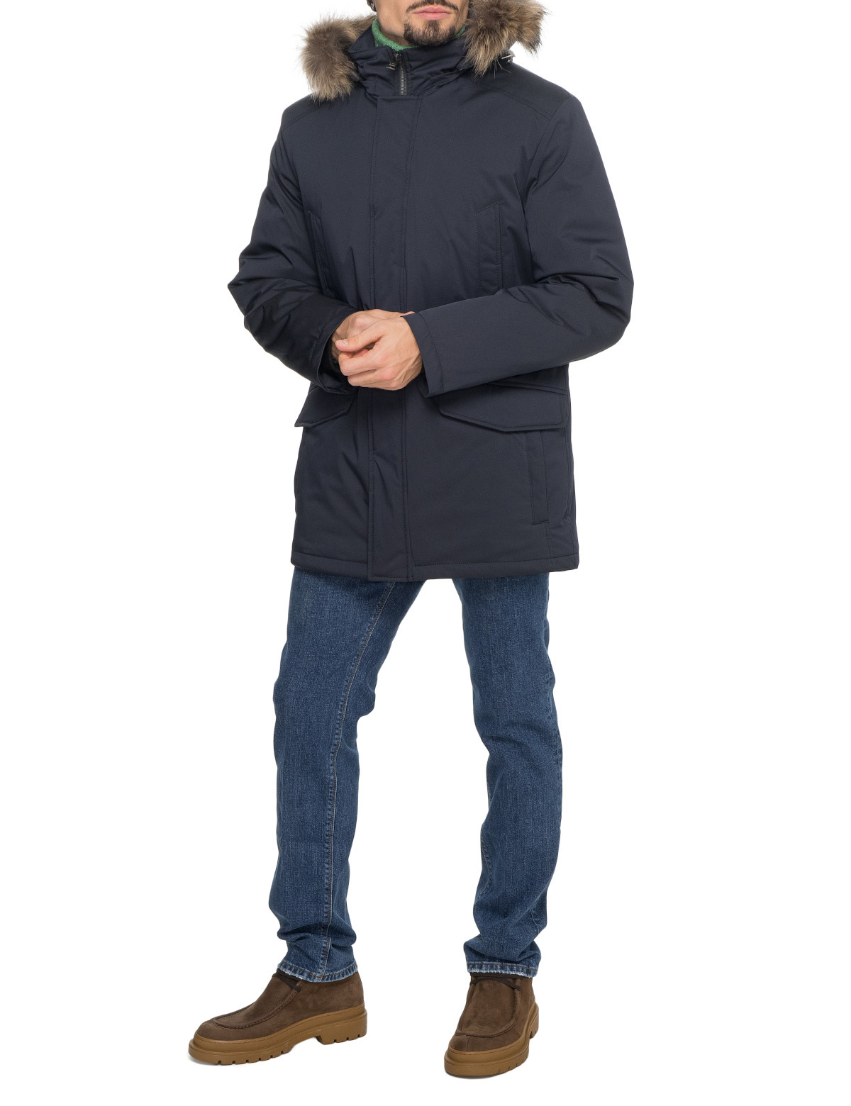 Карманы: Внешние - 6, Внутренние - 2, Капюшон: Съемный, Застежка: Молния, Кнопки, Особенности: Фиксатор талии, Съемный натуральный мех, Декор: Меховая отделка, Мех енота